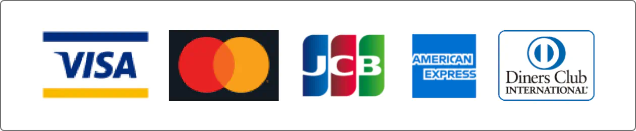 VISA、マスターカード、JCB、アメリカン・エキスプレス、ダイナースの各カードがご利用になれます(一括払いのみ)。